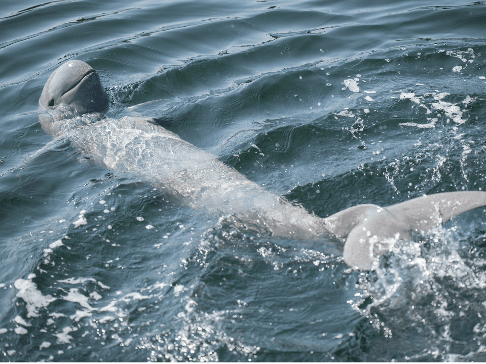 Freshwater dolphins with a distinctive rounded forehead and short beak. These dolphins are known for their unique, cooperative fishing techniques with local fishermen.