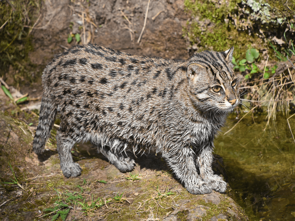 A medium-sized wild cat that thrives in wetlands and is an adept swimmer. They hunt primarily in water, preying on fish and other aquatic animals.
