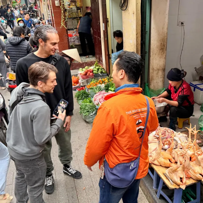 This is where the city shops. Where grandmothers test the ripeness of fruit and mothers bargain for the freshest catch. Morning meals happen on small stools, steam rising from bowls of noodle soup. Stalls spill over with greens you cannot name, chillies in every shade, fruits with spiky skins. The air carries everything at once. Fish sauce and mint. Coffee and incense. Sounds layer upon each other. The thump of a cleaver. The hiss of noodles hitting hot broth. Laughter between vendors who have worked these spots for years.