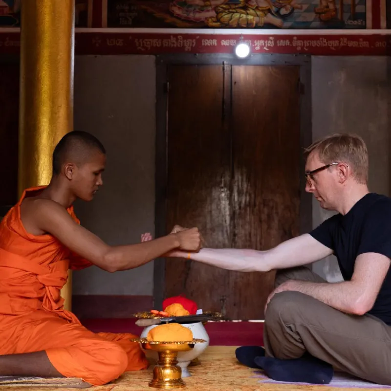 Receiving Blessings from Monks in Cambodia