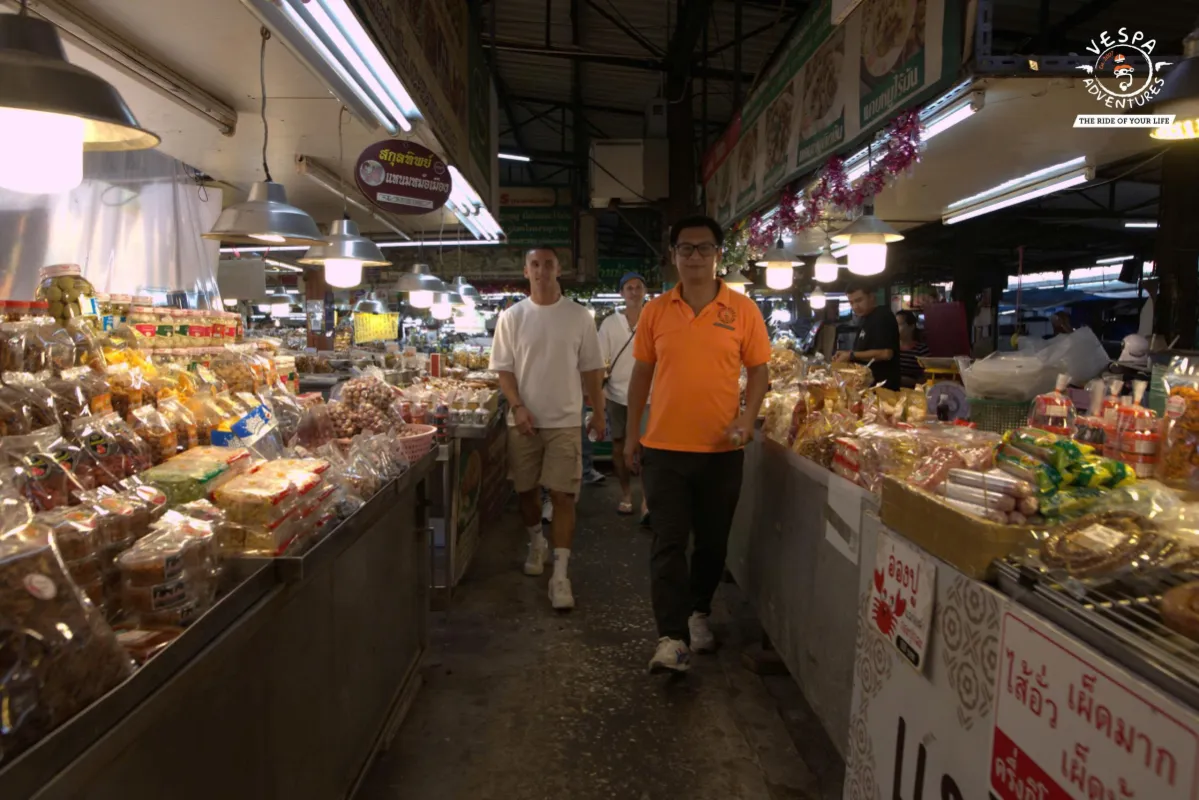 Dive into a traditional fresh market where locals shop daily, tasting Sai Ua herb sausage grilled fresh while learning about the ingredients that make this Northern specialty so unique.